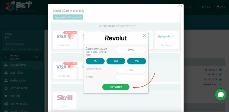 Skrill, Neteller nebo Jeton mohou vyžadovat kompletní verifikaci účtu. Dokončete ověření totožnosti a zkontrolujte, zda máte dostatek prostředků.