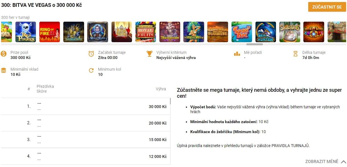Další článkyPodmínky tohoto Tipsport Vegas turnaje jsou prosté: