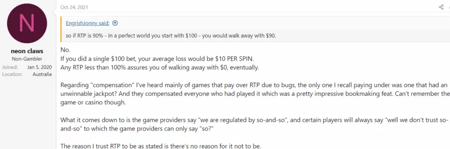 Neon claws neváhá s odpovědí. Uvádí důvody, proč je dle něj stanovené RTP pravdivé: