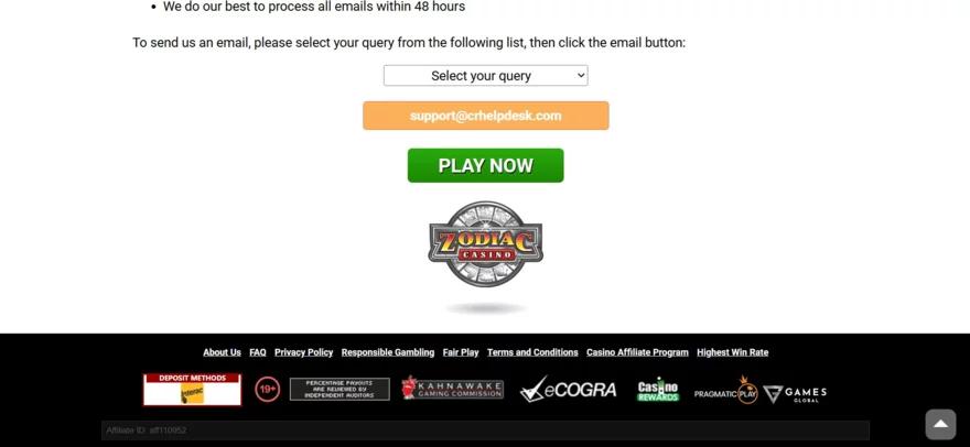 E-mailová podpora Zodiac Casino – kdy očekávat odpověď