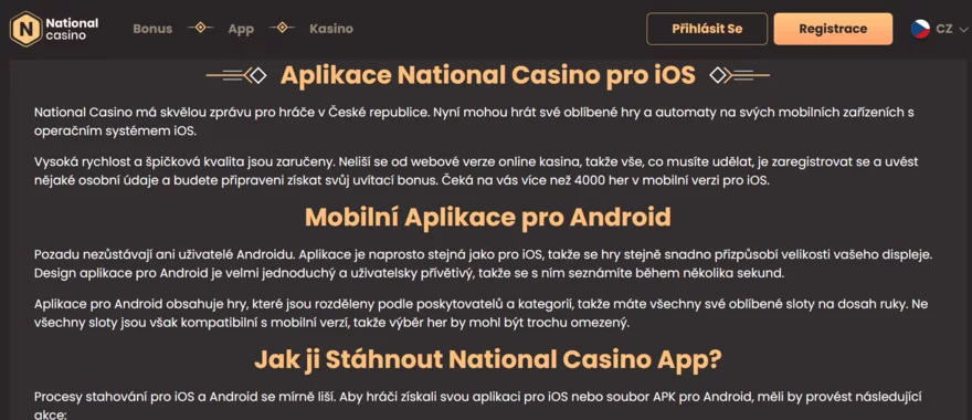 Pokud nechcete instalovat nic, National Casino nabízí plně optimalizovanou mobilní stránku. Je rychlá, funkční a funguje na všech zařízeních.
