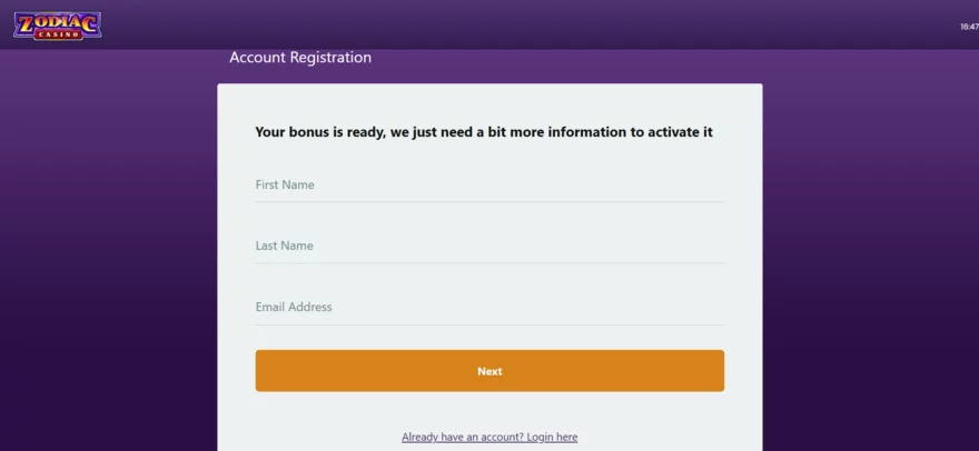 Jak založit účet v Zodiac Casino – postup registrace krok za krokem