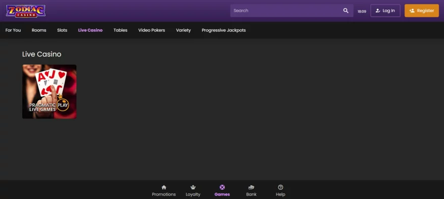 Dalším specifikem je samotná architektura herní sekce. Zatímco jinde často narazíte na nepřehlednou směs stovek ikon, Zodiac Casino volí mnohem jednodušší a přehlednější řešení. Po vstupu do sekce „Live Casino“ se otevře jednotná lobby, kterou kompletně zajišťuje Pragmatic Play Live. Díky tomu je nabídka přehledná, rychle se v ní zorientujete a všechny živé hry mají jednotný vizuální styl i ovládání.