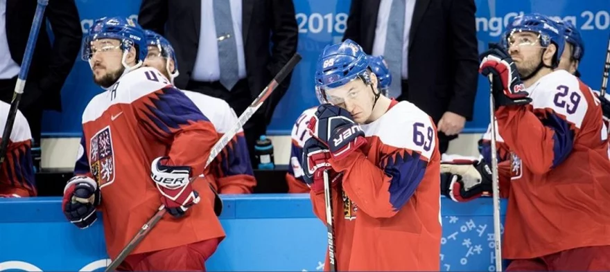 Zklamaní čeští hokejisté po prohraném utkání o bronz na ZOH 2018 (zdroj: idnes.cz)
