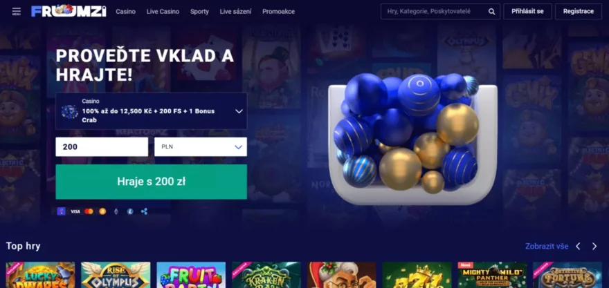Frumzi na to jde úplně jinak – a možná i chytřeji. Celý systém funguje na bázi Pay N Play, což znamená, že žádnou klasickou registraci ani účet nepotřebujete. Prostě otevřete web, kliknete na „Hrát“, přihlásíte se přes svou banku, odešlete vklad a okamžitě hrajete.
