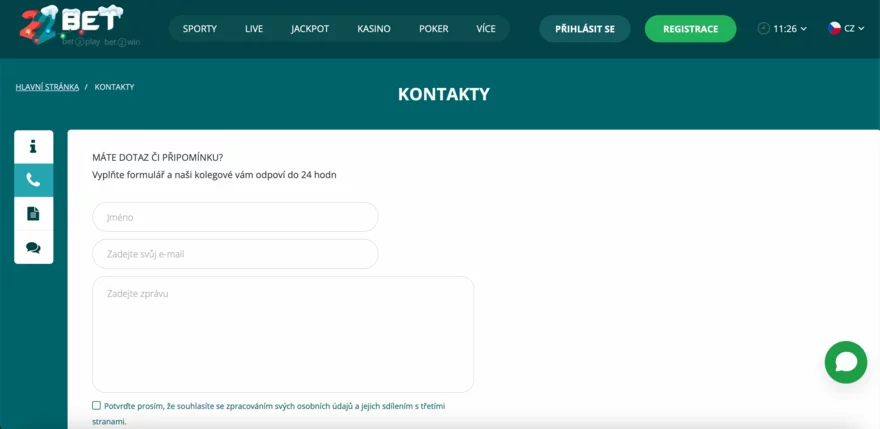 support-cz@22bet.com – hlavní kontaktní adresa pro českou podporu