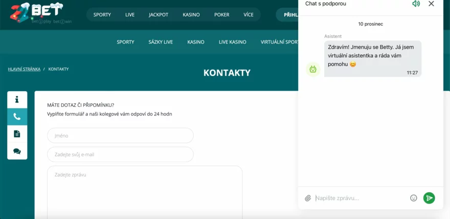 22Bet zákaznická podpora je známá tím, že nabízí více způsobů kontaktování a přizpůsobuje se rychlosti, jakou hráči běžně očekávají. Kombinace live chatu, e-mailových adres, kontaktního formuláře a centra nápovědy vytváří prostředí, kde má hráč možnost volit podle situace – někdy chce psát rychle, někdy potřebuje oficiálnější a detailnější odpověď. Právě různorodost je jedním z důvodů, proč mnoho hráčů hodnotí podporu pozitivně, a návazně i naše recenze 22Bet casina tuto zkušenost potvrzuje.