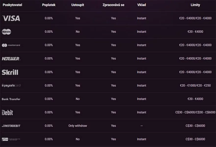 Minimální výběr přitom odpovídá částce 20 €, což je dost příznivé pro malé a příležitostné hráče.