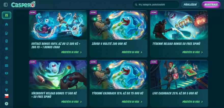 Caspero Casino – jméno evokující slavného přátelského ducha – vás vtáhne do tajemně laděného světa online hazardu plného zábavy a potenciálních výher. Toto moderní online casino bylo založeno v roce 2025 a již od startu zaujalo hráče svým originálním duchařským designem a bohatou nabídkou her. Největším lákadlem je bezesporu knihovna s více než 11 000 hrami od desítek předních vývojářů, doplněná o inovativní prvky jako Bonus Crab či věrnostní obchod s odměnami. V naší recenzi se podíváme na všechny důležité aspekty – od bonusů a herní nabídky přes bezpečnost a platby až po zákaznickou podporu a lokalizaci pro české hráče.