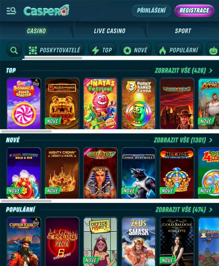Caspero Casino nás mile překvapilo svou všestranností a kvalitou služeb. Na jednom místě nabízí obrovský výběr her (včetně živého casina) a dokonce i sportovní sázení, takže jde o univerzální platformu pro různé typy hráčů. Potěšila nás štědrá bonusová nabídka – uvítací balíček s free spiny, originální Bonus Crab, pravidelné akce – i promyšlený VIP program s cashbackem. Velkým plusem je také lokalizace do češtiny a podpora korun, což českým hráčům zpříjemňuje hraní.