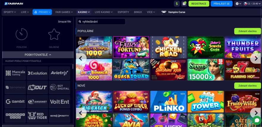 FairPari se může pochlubit skutečně bohatou herní nabídkou. Pojďme se tedy podívat na jejich dostupné casino hry, včetně automatů, demoverzí a populárních titulů, a také výrobce her. V lobby najdete tisíce titulů od předních výrobců (NetEnt, Pragmatic Play, Evolution, Red Tiger a další). Portfolio zahrnuje klasické výherní automaty (sloty), stolní hry (ruletu, blackjack, baccarat aj.) i unikátní tituly (indické pokerové hry, crash games apod.). Pro milovníky jackpotů jsou připraveny progresivní automaty a turnaje o velké ceny. Praktický režim hry zdarma (demo mode) umožňuje vyzkoušet většinu her bez rizika a procvičit strategii. Celkově je design webu moderní a intuitivní – přehledné menu a filtry usnadňují hledání oblíbené hry, a všechny hry běží plynule bez zpoždění či zasekávání díky spolehlivé technologii.