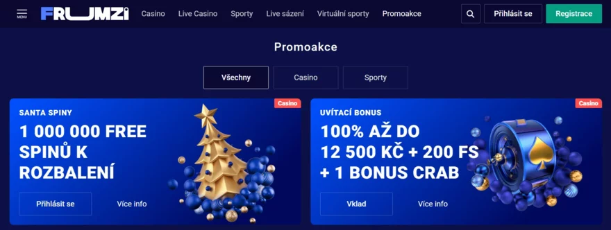 Bohužel bonus bez vkladu Frumzi aktuálně nenabízí. Všechny odměny vyžadují aktivitu nebo vklad, což kasino vynahrazuje bohatou paletou promoakcí zmíněných výše. Nechybí ani VIP program s cashbacky a dalšími benefity pro věrné hráče.