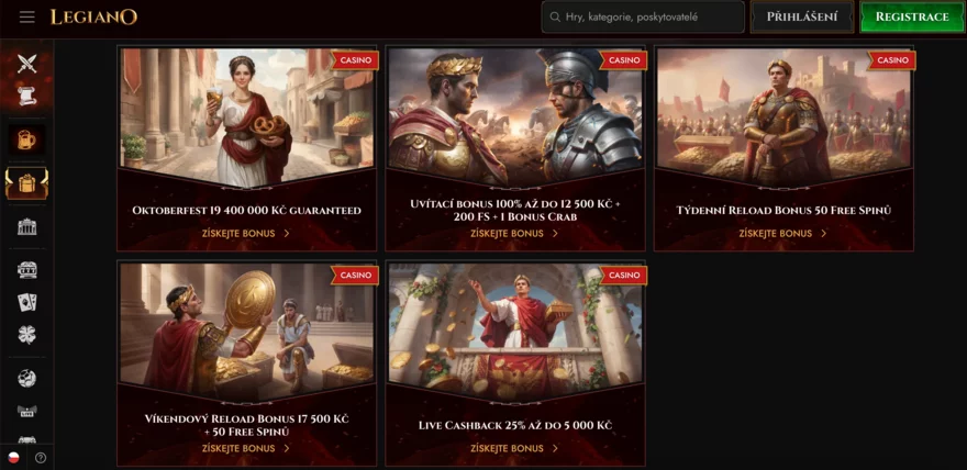 Legiano Casino nabízí pestrou škálu bonusů a propagačních akcí, které jsou navrženy tak, aby oslovily různé typy hráčů. Casino Legiano běží na platformě Igate, která je prověřená a využívaná mnoha online casiny po celém světě.