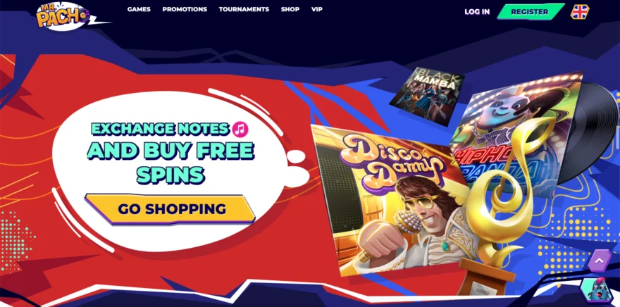 Casino Mr. Pacho přichází s excentrickým a výrazným designem, který okamžitě upoutá vaši pozornost. Stránka je barevná a všechny prvky na ní odrážejí tématiku hudby, což dodává celému prostředí jedinečný hudební nádech. Už na první pohled zaujmou postavičky bláznivých hudebníků a hudební prvky, které se prolínají celou stránkou.