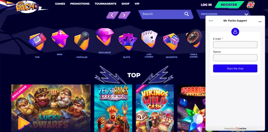 Pokud vás napadne jakýkoli dotaz nebo problém, můžete využít live chat, který je k dispozici nepřetržitě 24 hodin denně, 7 dní v týdnu, přímo na webových stránkách casina Mr. Pacho. Tato služba umožňuje rychlou a interaktivní komunikaci s profesionálním týmem podpory. Co je ještě lepší, komunikace může probíhat i v češtině, což usnadňuje komunikaci pro české hráče.