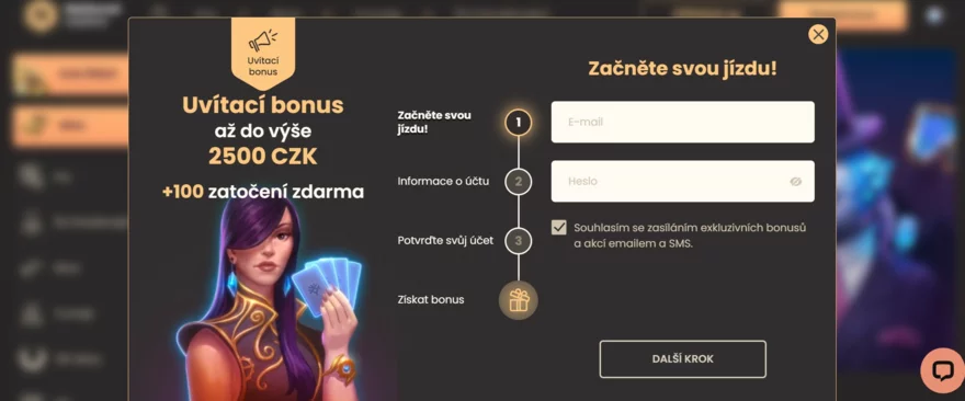 Registrace je zdarma a opravdu rychlá – vytvoření konta netrvá déle než pár minut. Po odeslání formuláře si můžete prohlédnout rozhraní kasina, ale zatím pouze neplaceně. Skutečné sázení je dostupné až po dokončení ověření účtu.