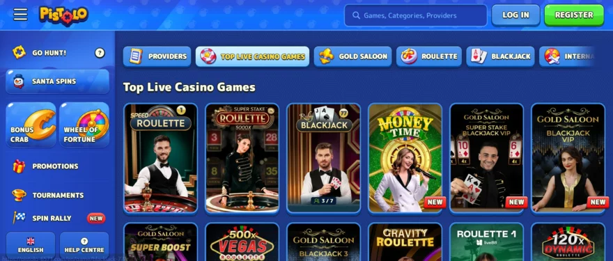 Milovníci autentického zážitku ocení špičkové Live Casino. Pistolo nabízí přes 180–300 živých her s krupiéry – ruletu, blackjack, baccarat i oblíbené game shows (Crazy Time, Monopoly Live). Živé stoly provozují studia jako Evolution Gaming či Ezugi, takže kvalita streamu je na vysoké úrovni.