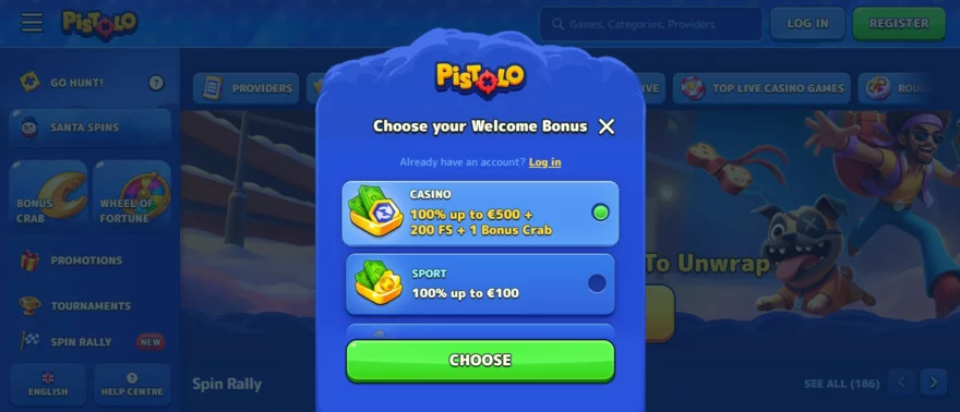 Bonusová nabídka patří bezesporu k hlavním lákadlům Pistolo Casina. Hned po registraci čeká na nové hráče uvítací balíček v podobě 100% bonusu k prvnímu vkladu až do výše 500 € (cca 12 000 Kč) + 200 free spinů na vybraných automatech. To v praxi znamená, že ke vkladu dostanete dvojnásobek kreditu navíc a pořádnou sadu volných zatočení. Free spiny jsou zpravidla připisovány postupně (např. 20 otoček denně po dobu 10 dní).
