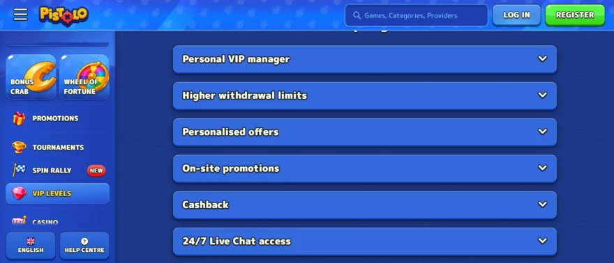 Podmínky vstupu do nejvyšších pater jsou často na pozvání, ale Pistolo motivuje všechny hráče. Celkově hodnotíme VIP systém pozitivně – přináší hezké odměny 🏆, které umocňují zážitek.