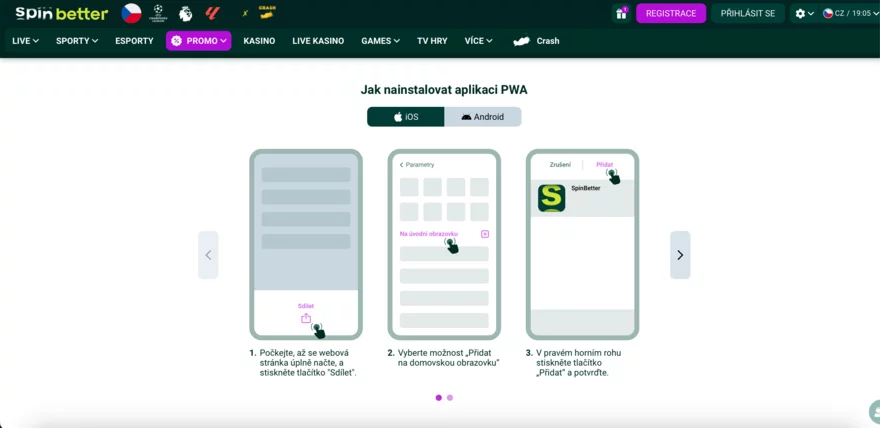 Instalace Spinbetter aplikace krok za krokem