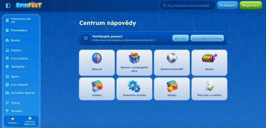 Zákaznická podpora je dostupná 24 hodin denně, 7 dní v týdnu, což je velkou výhodou pro hráče, kteří mohou potřebovat pomoc kdykoliv. E-mailová podpora na adrese support@spinfest.com je také efektivní a odpovědi na dotazy jsou obvykle doručeny během několika hodin. Tento rychlý čas odezvy je klíčový pro udržení spokojenosti hráčů a zajišťuje, že vaše problémy budou řešeny bez zbytečných prodlev.