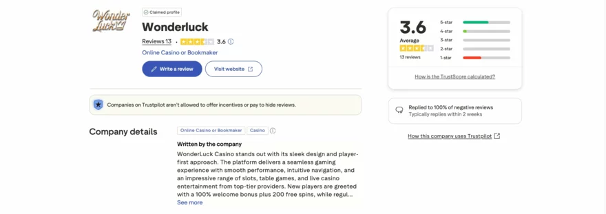 WonderLuck provozuje společnost Nova Forge Ltd., držící licenci z Anjouanu (Komorská unie). Licence na Anjouanu znamená splnění základních požadavků na bezpečnost a ochranu hráčů, i když nejde o evropskou licenci. Podle nezávislých recenzí klade casino důraz na transparentnost a férová pravidla pro hráče. Nejsou známy žádné vážné stížnosti hráčů, což svědčí o solidní reputaci provozovatele. Na webu Trustpilot má casino hodnocení 3,6/5, což je pozitivní a vypovídá o důvěryhodnosti casina.