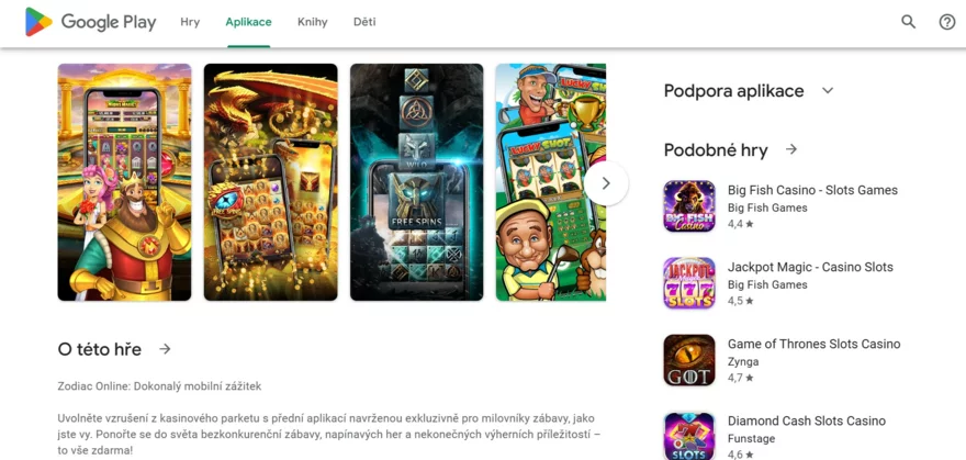 Instalace aplikace Zodiac Casino na Android (APK vs. Google Play)