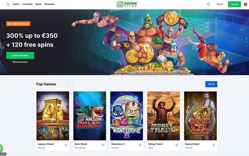 DozenSpins se od svých začátků na poli online zábavy (2020) profiluje jako obojživelník. Kromě kurzového sázení totiž nabízí také online casino a hry s živými krupiéry. Nabídka sportů a soutěží zahrnuje všechny běžně vyhledávané události. Nelze ale říct, že by byla příliš široká, protože mnoho soutěží a turnajů, které jsou k dispozici u jiných bookmakerů zde chybí. To stejné, bohužel, platí také o vypisovaných příležitostech, na které lze sázet.